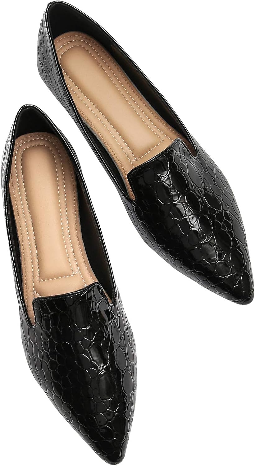 URELEGAN Women's Pointed Toe Patent womens dressy flats