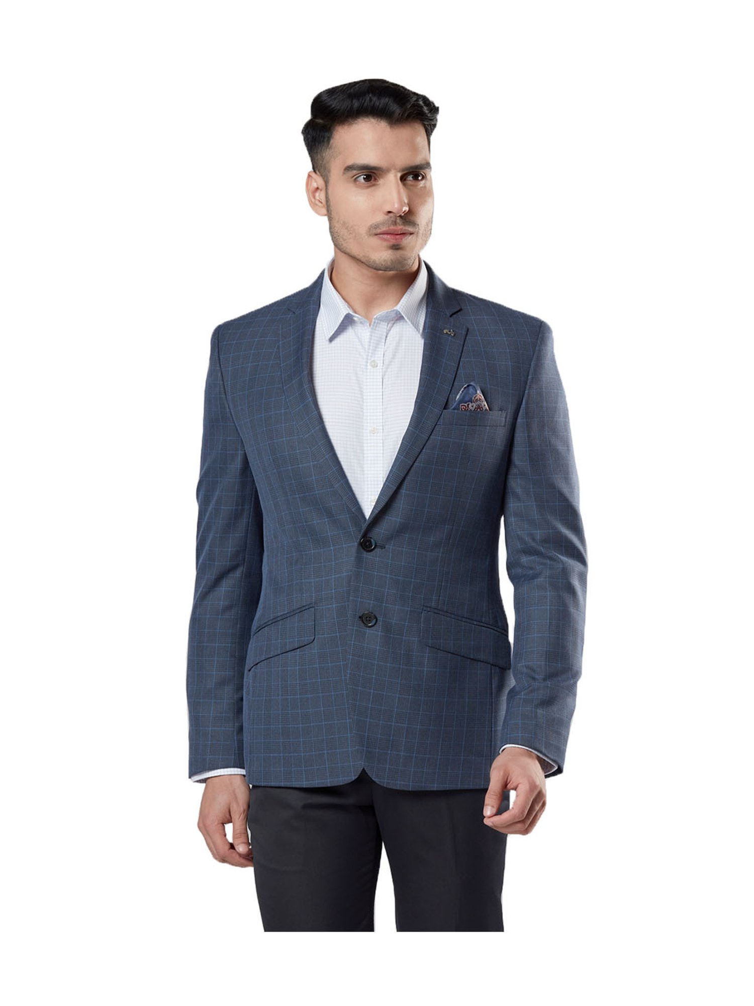 Dark Blue Checks Super Slim Fit Blazer blue blazer next