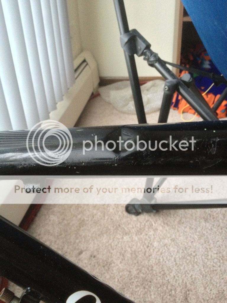 dent in top of Orbea Alma top tube dented aluminum bike frame