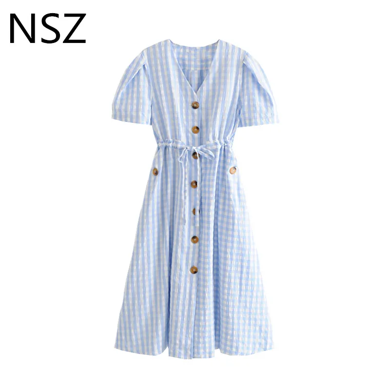 Cotton Summer Dress Plaid Midi Dress cotton summer dresses with short sleeves