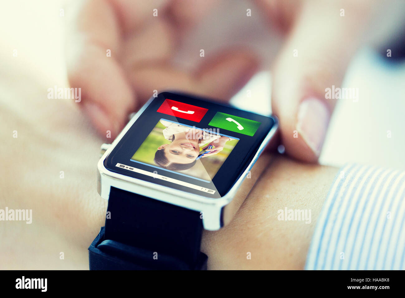 incoming call on smartwatch Stock Photo smartwatch incoming call