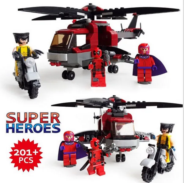Model Building X MEN Wolverine VS lego deadpool helicopter