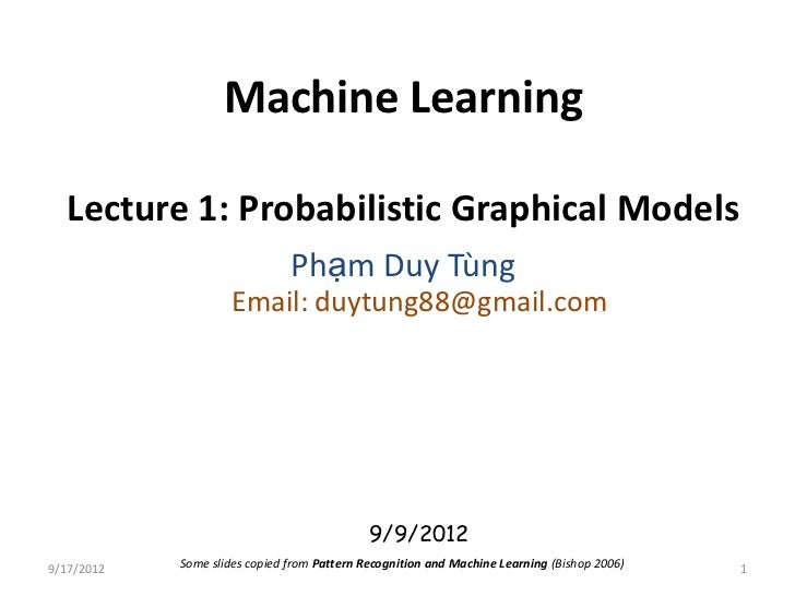 Lecture 1 graphical models graphical models machine learning