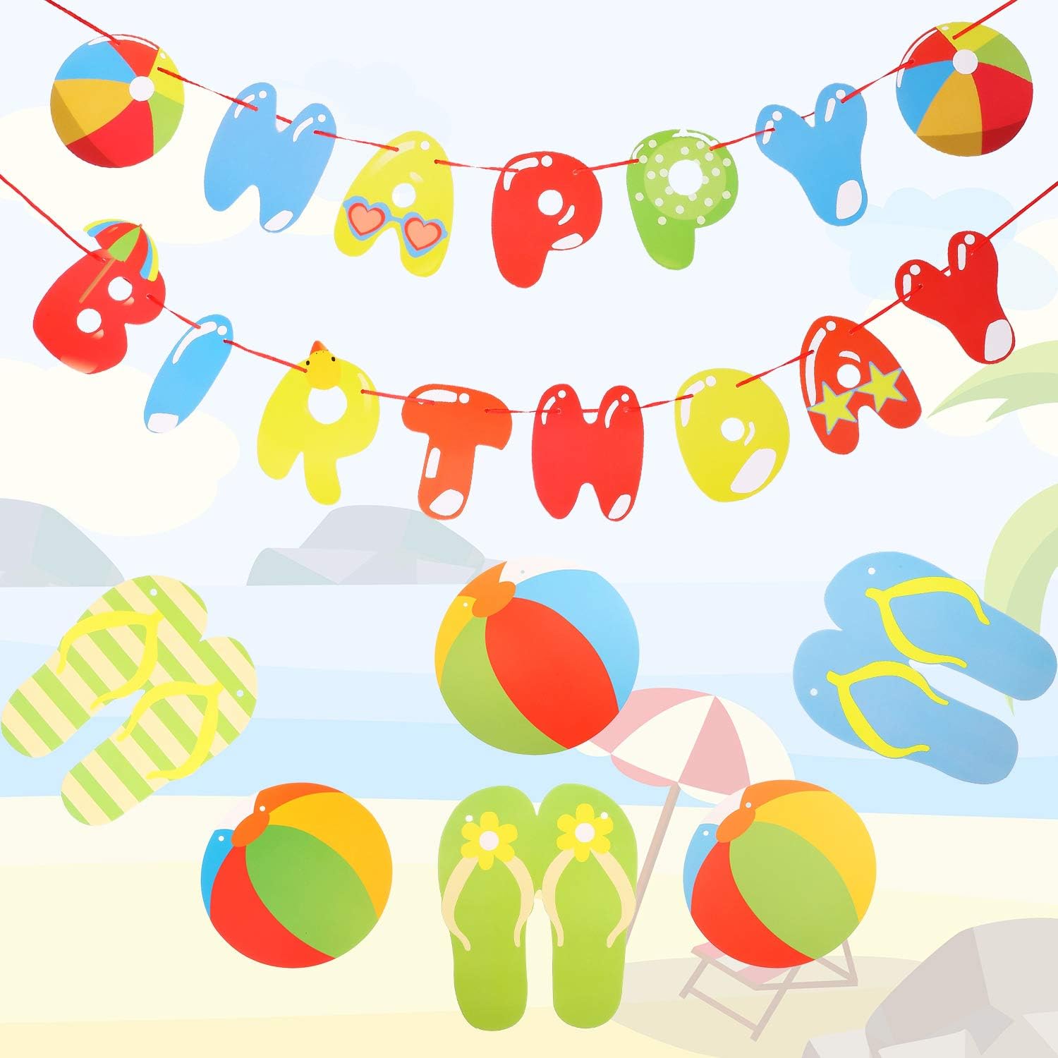 Beach Ball Happy Birthday Banner Pool beach ball garland