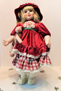 porcelain doll red velvet dress