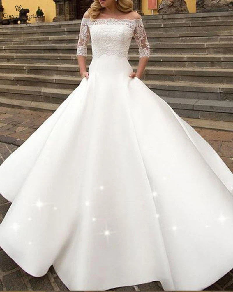 Simple Satin Wedding Dresses with Lace lace jackets for wedding dresses