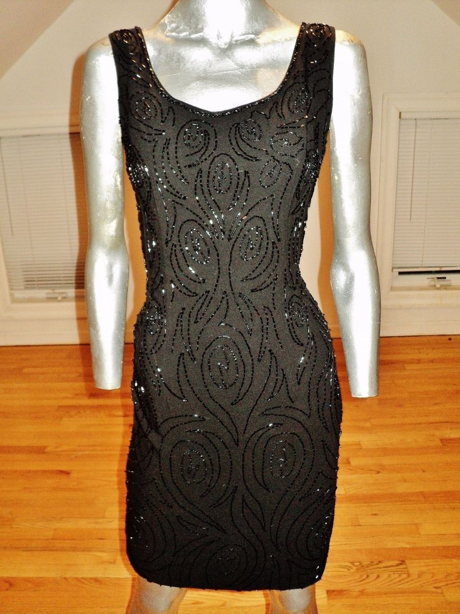 Vintage 1940 Flapper Beaded Black Crepe 1940 flapper dress