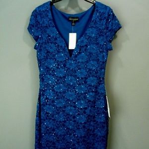 Sheath Dress (6, Gold/Silver connected lace sweetheart sheath dress