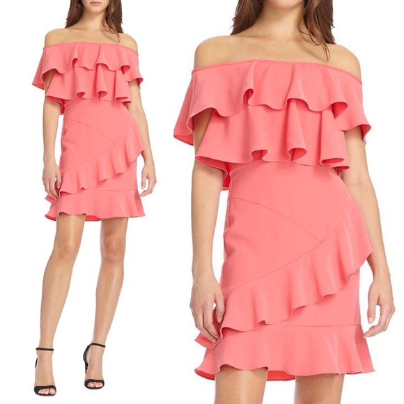 Monique Lhuillier Dresses | Pink Ruffle pink ruffle off the shoulder dress