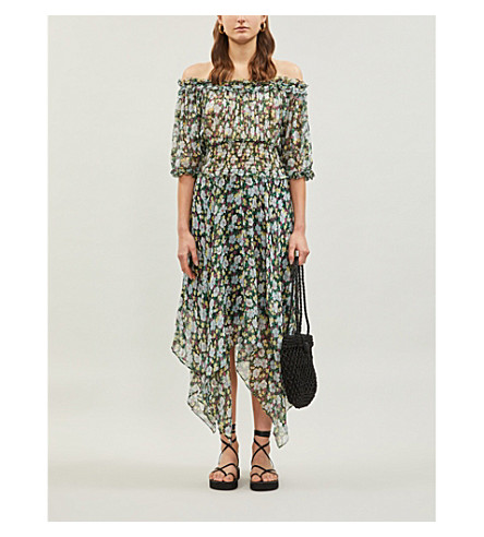 Maje Rulli Off-the-shoulder Floral Silk maje off shoulder dress