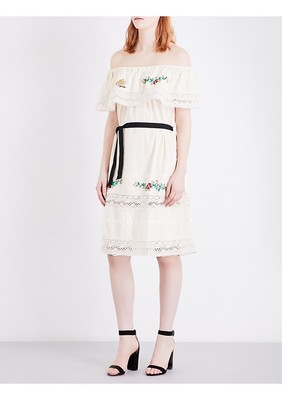 Authentic MAJE Floral Embroidered Dress maje off shoulder dress