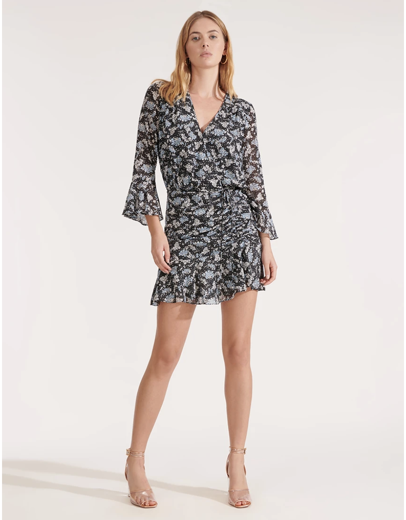 Black Mariposa ruched floral-print silk