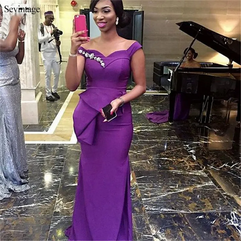 Cheap Purple Satin Mermaid Prom Dresses custom made plus size prom dresses
