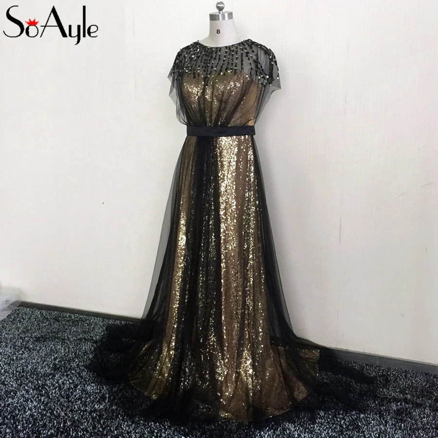 SoAyle Prom Dresses 2018 Sequin Gold plus size couture evening gowns