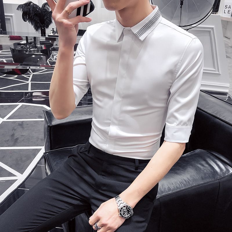2020 Simple Summer Men Dress Shirt summer work shirts