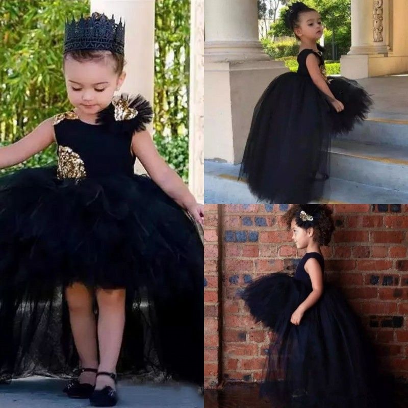 Black High Low Flower Girl Dresses cheap baby gowns