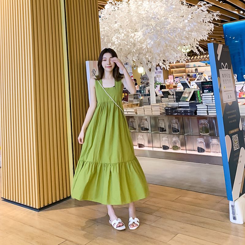 New Summer Korean Version Of The Dress avocado green dress
