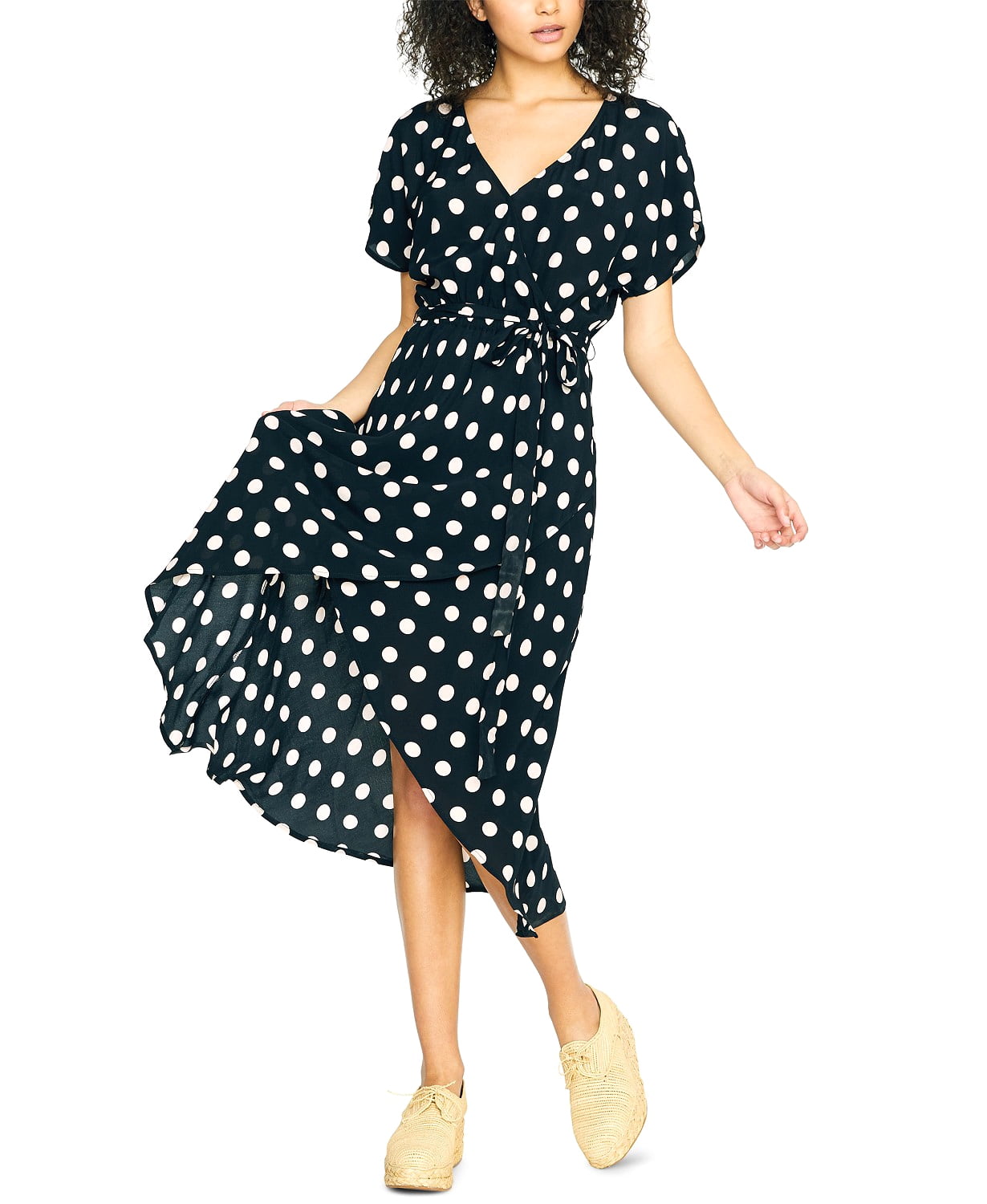 Polka-Dot Faux-Wrap Midi Dress sanctuary polka dot dress