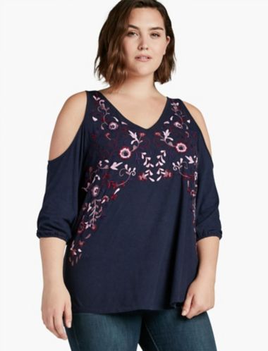 Plus Size Printed Cold Shoulder Top lucky brand cold shoulder top