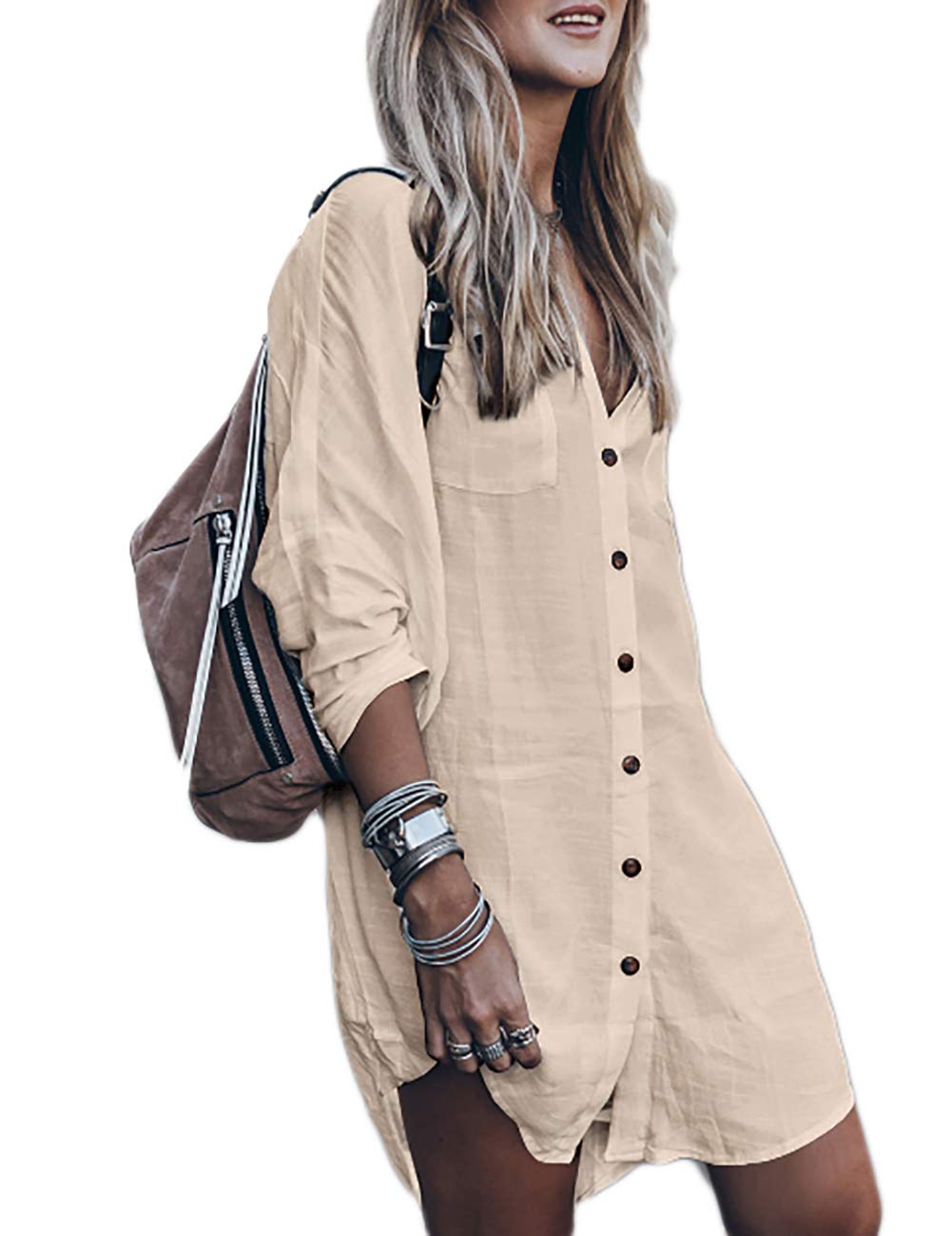 Bsubseach Women Loose Long Sleeve beach long sleeve cover up