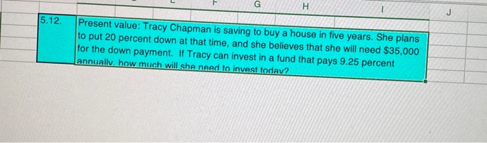 Solved: G H J 5.12. Present Value how much is 20 percent down payment