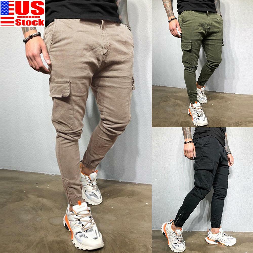 Mens Cuffed Knee Pad Pocket Jogging cuffed walking trousers