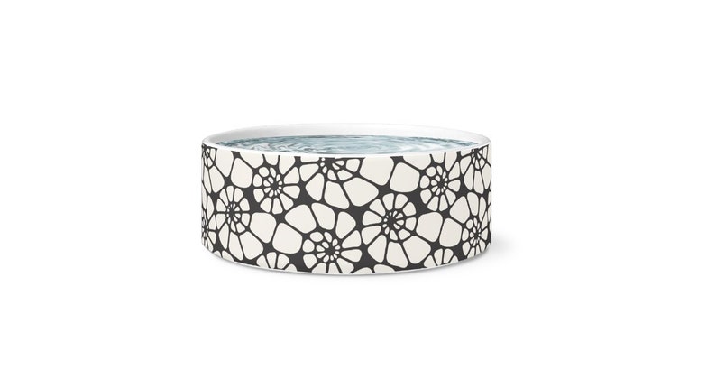 Large Dog Bowl/Swirling Shells/Black black and white dog bowls