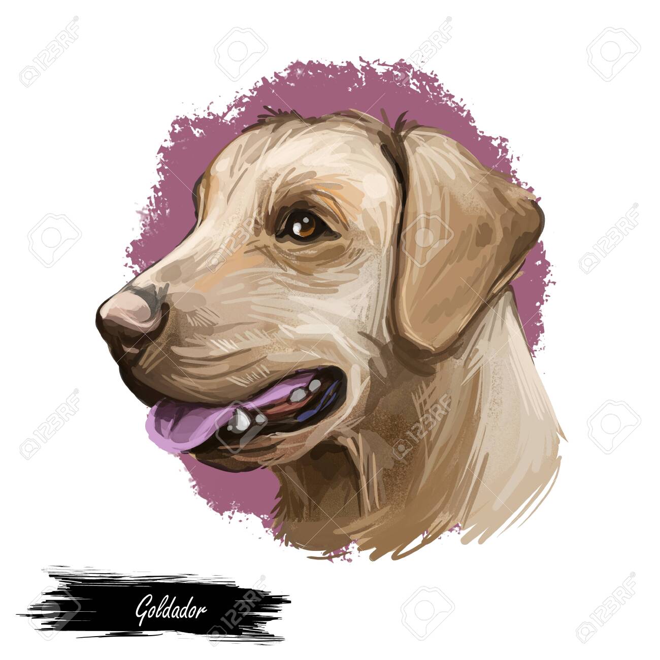 Goldador Dog Digital Art Illustration goldador doodle