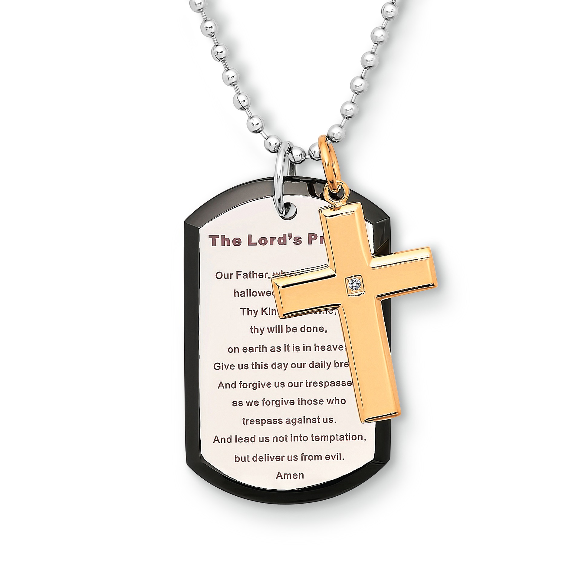 Men's Stainless Steel Cross and Dog Tag black cross dog tag
