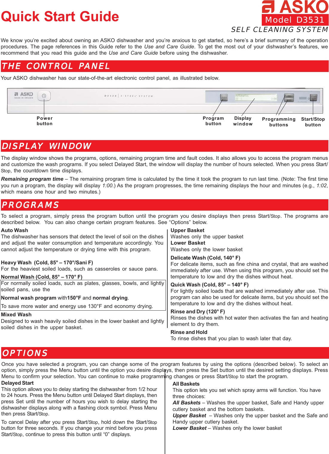 ASKO D3530 USE AND CARE