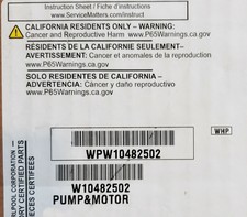 Whirlpool WPW10482502 Pump and Motor wpw10482502