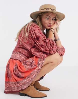 adidas originals scarf print jumper in pink and red
