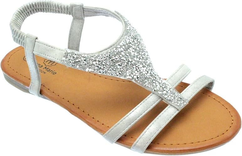 TM Sandals - CLIO Silver Sparkly Flat silver sparkly sandals uk