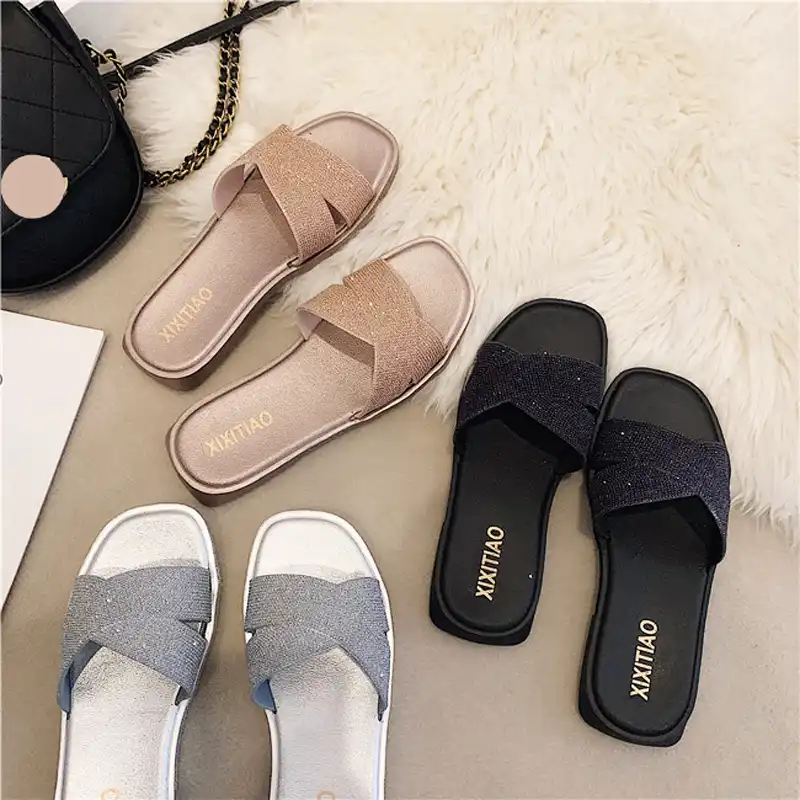 European Brand Cross Band Flip Flops silver beach sandals