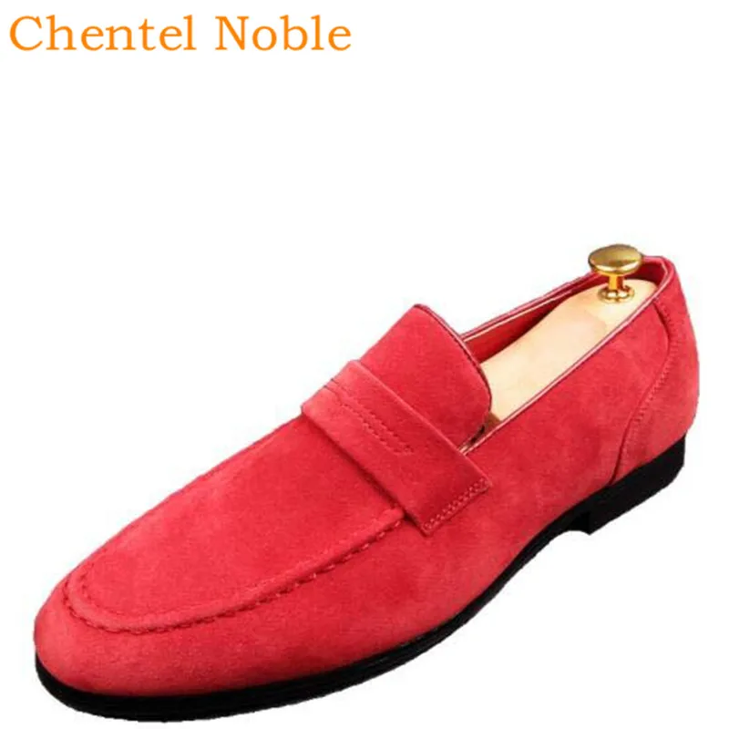 Chentel Noble Manual Flock Fashion Mens comfortable red dress shoes