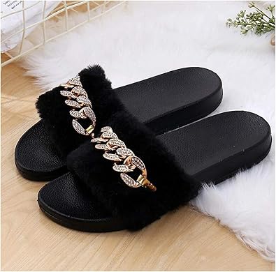 Zalin Women Slippers Chain Fur Slippers season 6 slippers