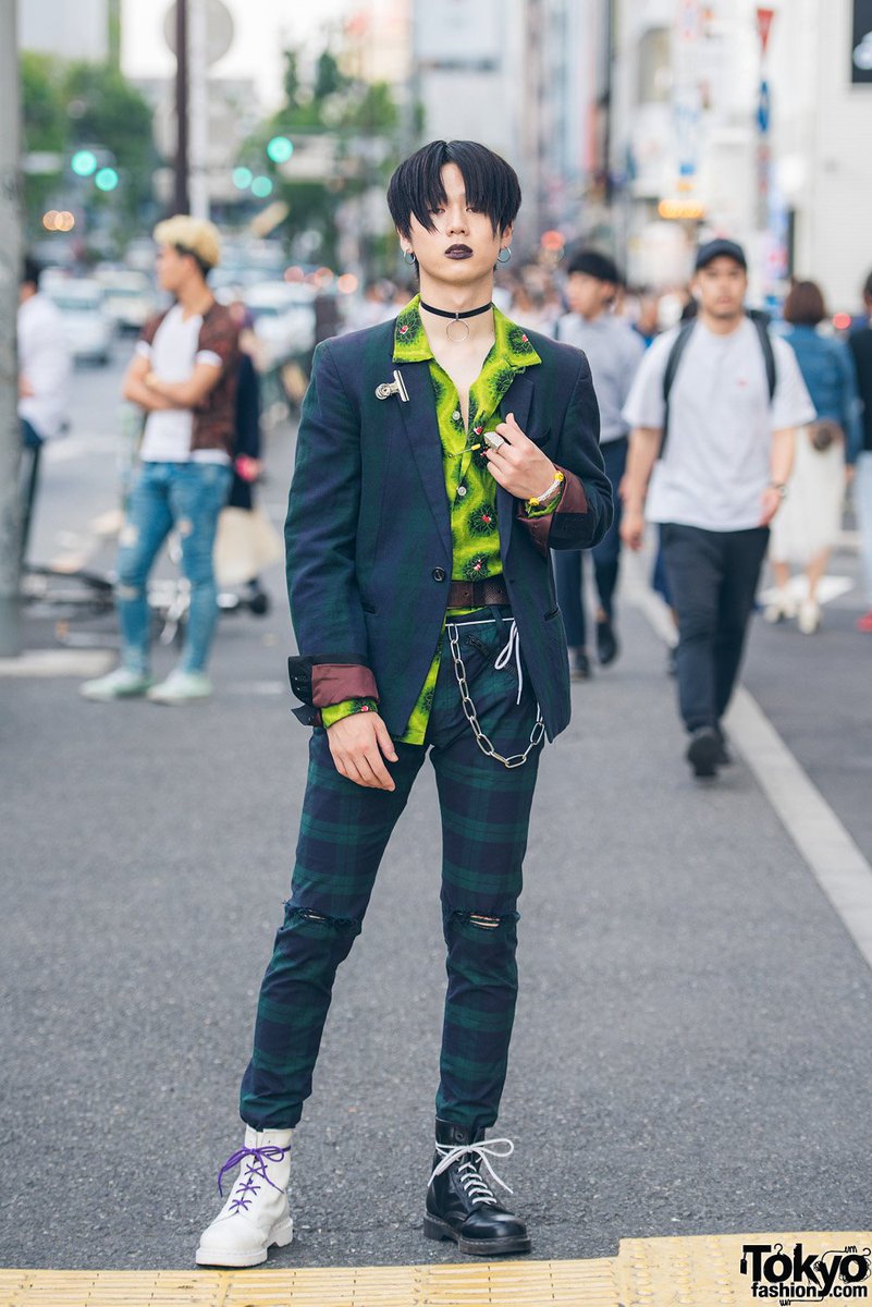yr Harajuku wearing plaid Undercover suits with doc martens
