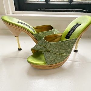 Polly Heels Green Glitter Vtg 7 betsey johnson polly heels