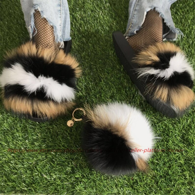 1 Set Large Fur Real Raccoon Fox Fur raccoon slippers