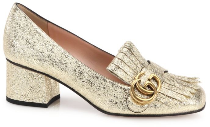Gucci Marmont GG Crinkle Metallic gucci marmont high heel pumps