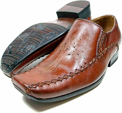 Amazon.com | CONAL Kids Boys Brown Slip kids tan dress shoes