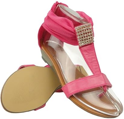 Womens Flat T-Strap Mesh Thong Sandals fuchsia pink sandals