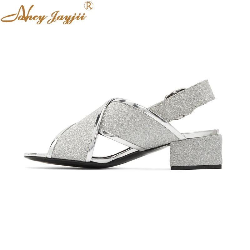 Naycyjayjii Summer Silver Classic ladies silver mid heel sandals