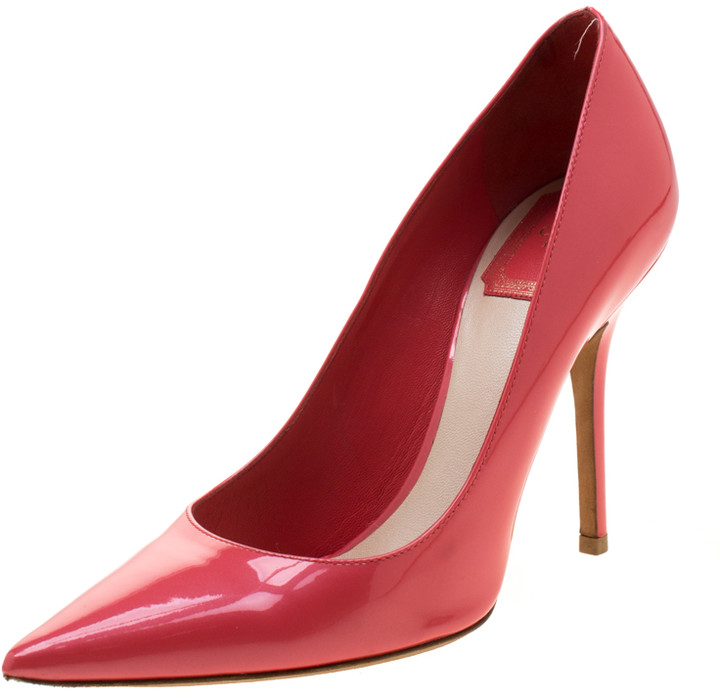 Christian Dior Coral Patent Leather patent leather pointed toe pumps