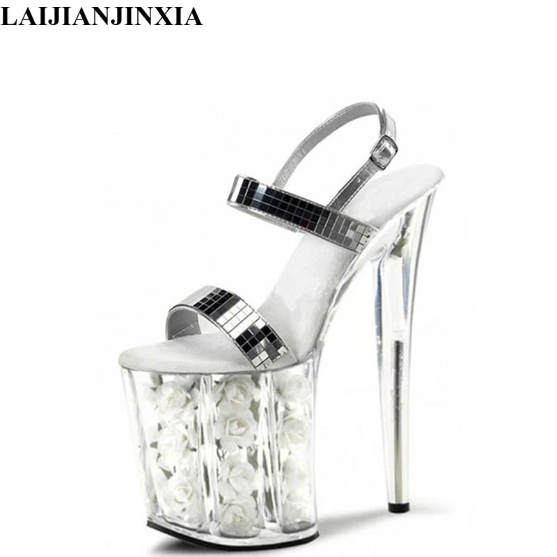 LAIJIANJINXIA With high 20cm white silver glitter strappy heels