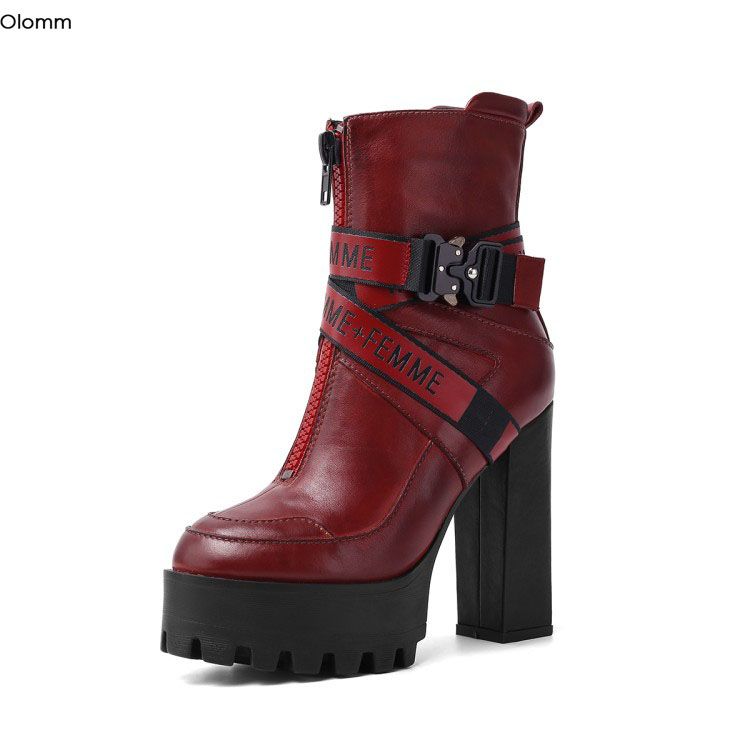 Rontic New Women Platform Ankle Boots red platform booties