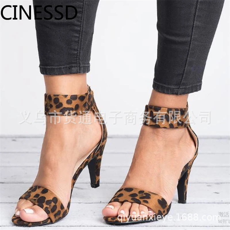 Womens Summer Peep Toe Leopard Print leopard print mid heel sandals