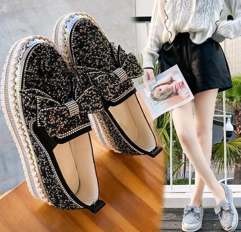 Womens Loafers 2020 Woman Glitter Bling women's loafer style shoes