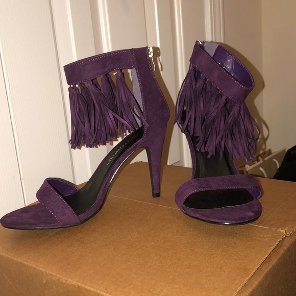 Ashley Stewart Shoes | Fringe Opentoe purple wide width heels