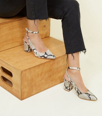 Black Faux Snake Block Heel Slingbacks new look slingbacks